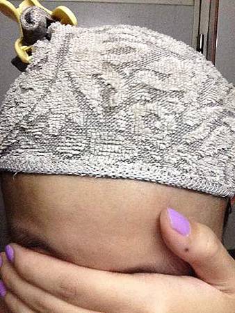 STEP6. 先別急著沖水,一樣拿起乾毛巾,包覆整頂頭髮,約莫3-5分鐘後拿下毛巾