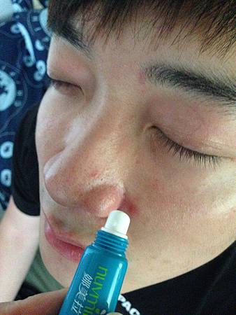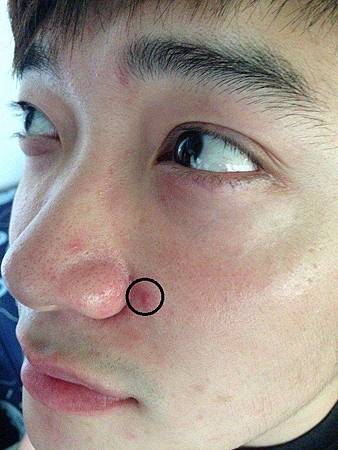 發現他的痘痘和熊先生一樣長在鼻翼附近