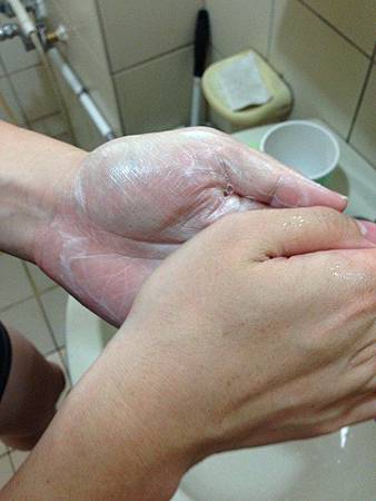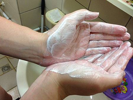 就像熊先生一樣,雙手搓揉至有白色泡沫即可