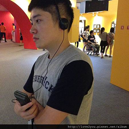 發現他如此認真沉著的一面 聆聽者語音導覽 有所啟發般…(主要是因為面無表情吧 哈!)