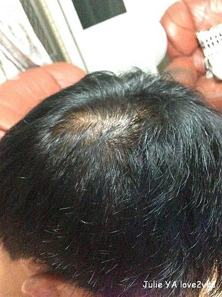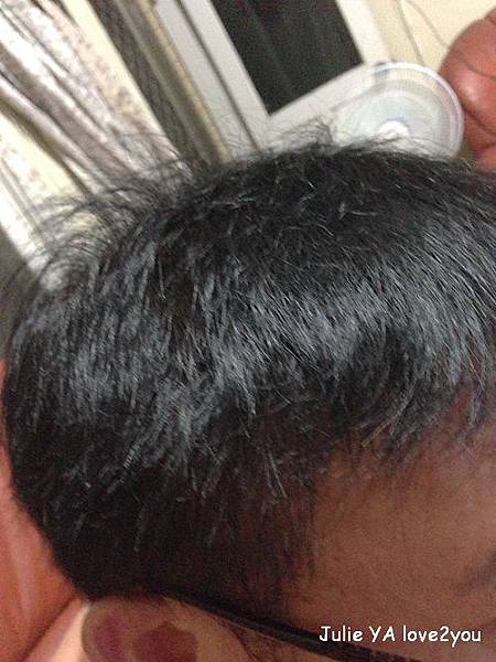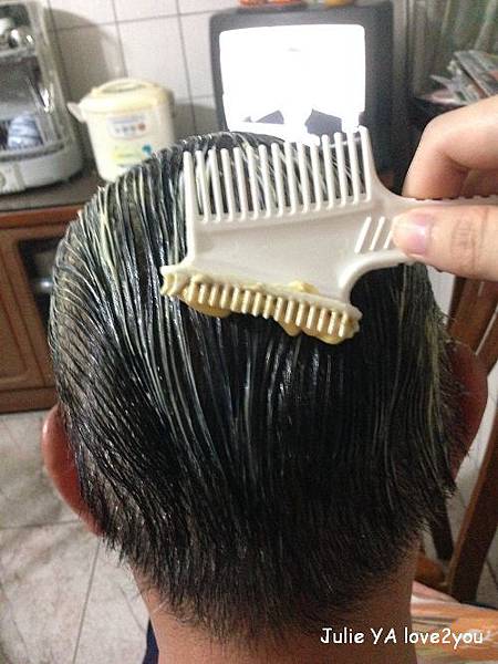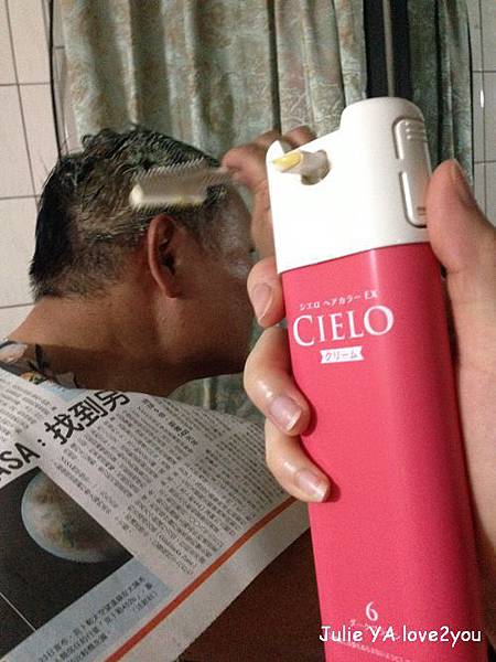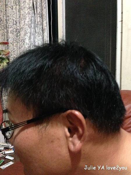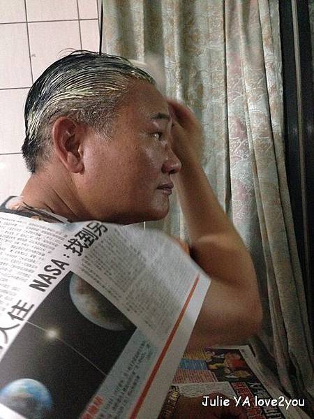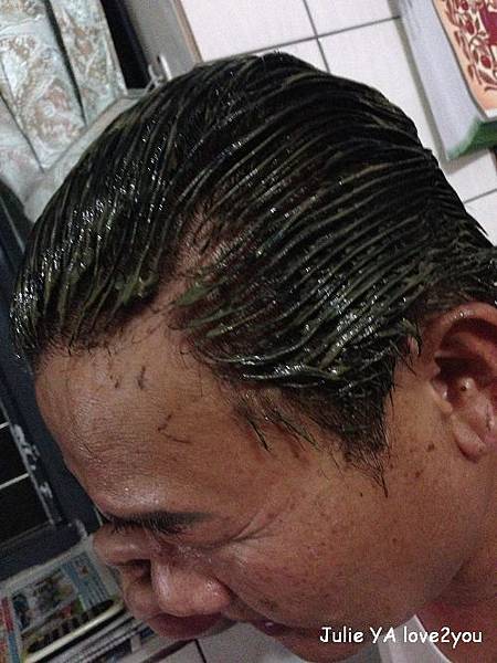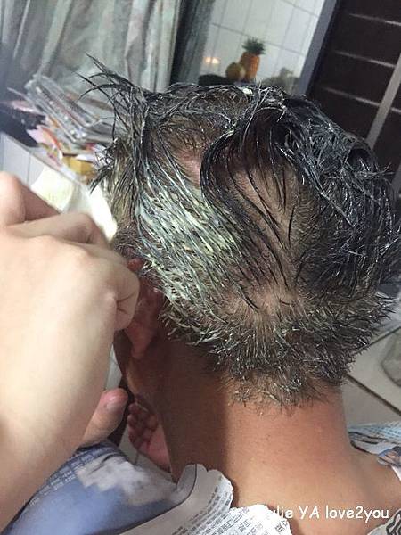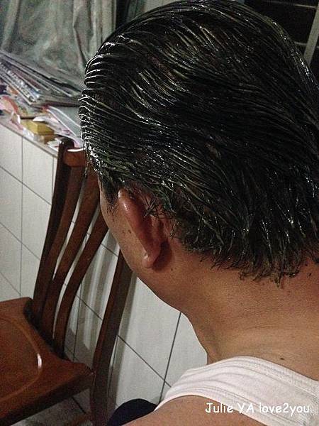 接著就將鏡頭帶到今天 接受染髮的爸爸頭毛上