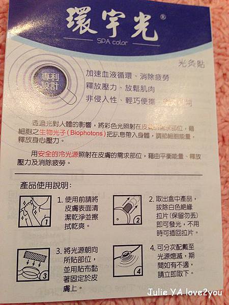 剛好手邊有獲得「環宇光」可以促進血液循環的光灸貼