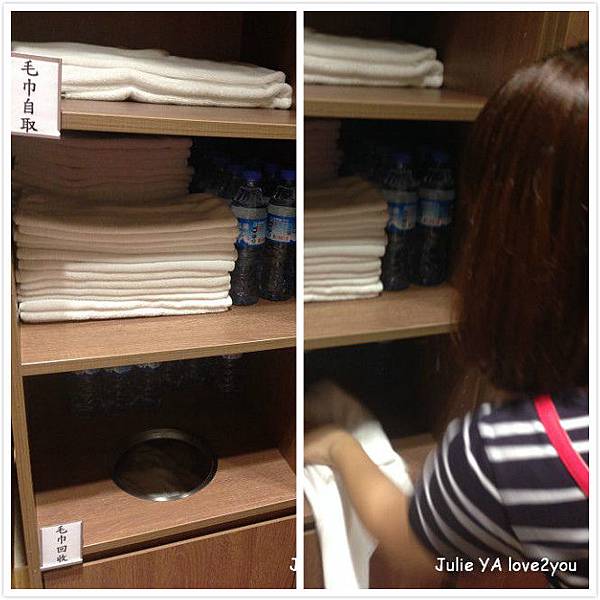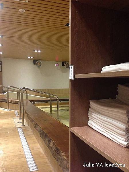 步入此溫泉SPA區 會看到貼心的右手邊櫃子有擺放著乾毛巾、水