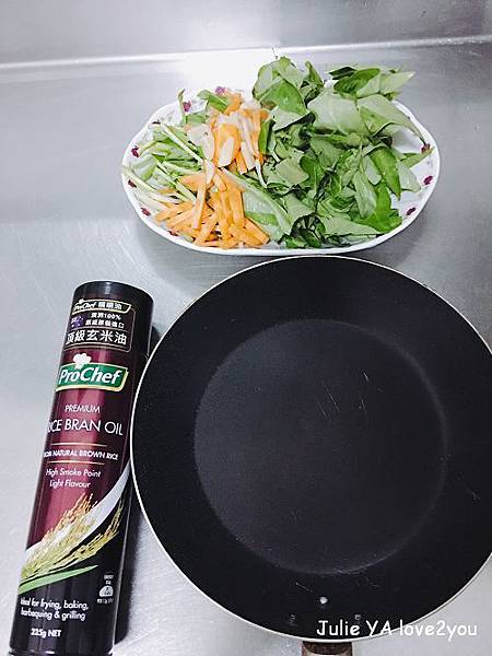 所以第一步驟就是先噴油在鍋子上吧