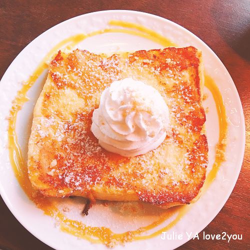 鬆軟的吐司沾滿了蛋液,入口有即化的感覺