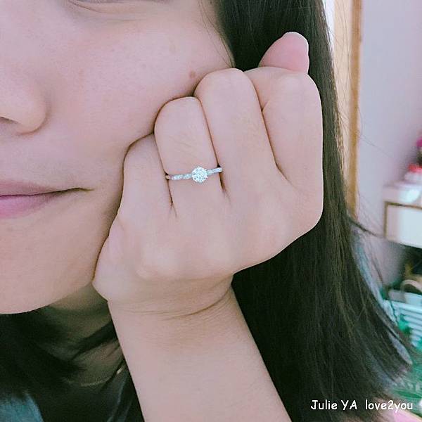 (心中想著 求婚戒要符合我的個性 而結婚戒再來挑款素雅的吧)