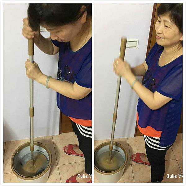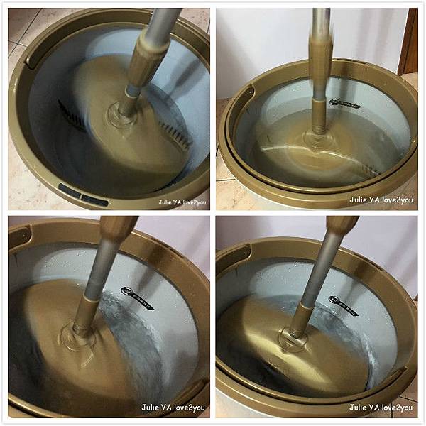 一樣向下壓,即可看見平板拖在旋轉 甩出水來