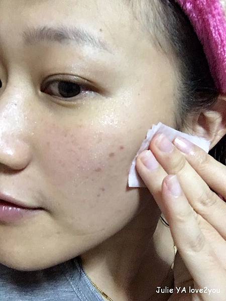 使用化妝棉沾取化妝水,於局部進行濕敷