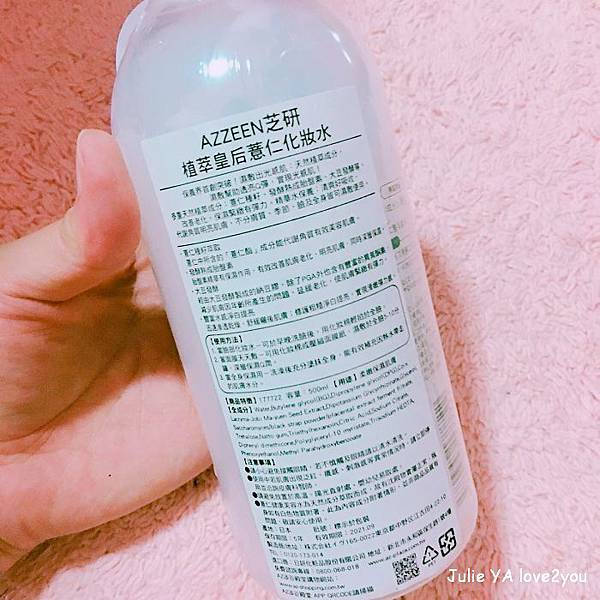 我手上拿的是AZZEEN芝研植萃皇后薏仁化妝水