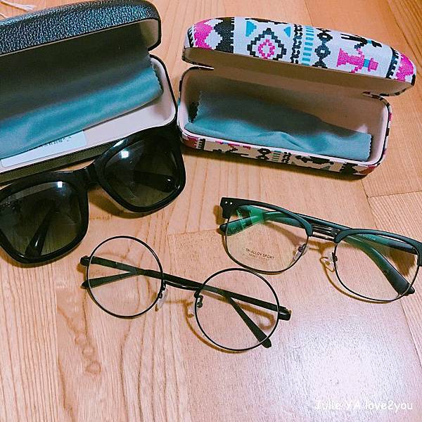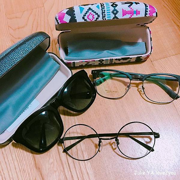 除了金屬圓框文青眼鏡之外 其它兩支都有漂亮的眼鏡盒