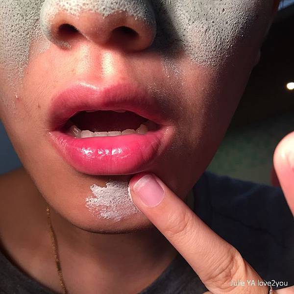 皓哥看我在敷泥面膜,也把剩下的毛孔緊緻型(綠)拿去使用