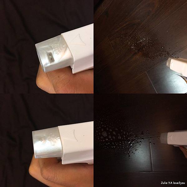 噴出來就散開來,比較適合大範圍,像是空曠的地板