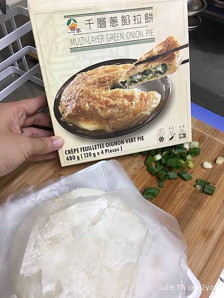 老媽冰箱會放外面市售的蔥油餅皮,以便我們肚子餓時可以充肌