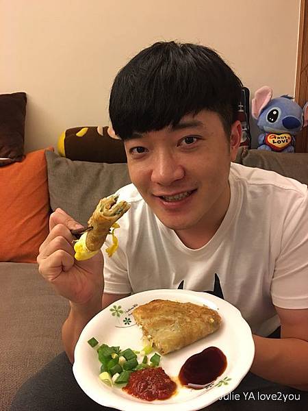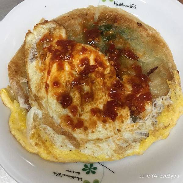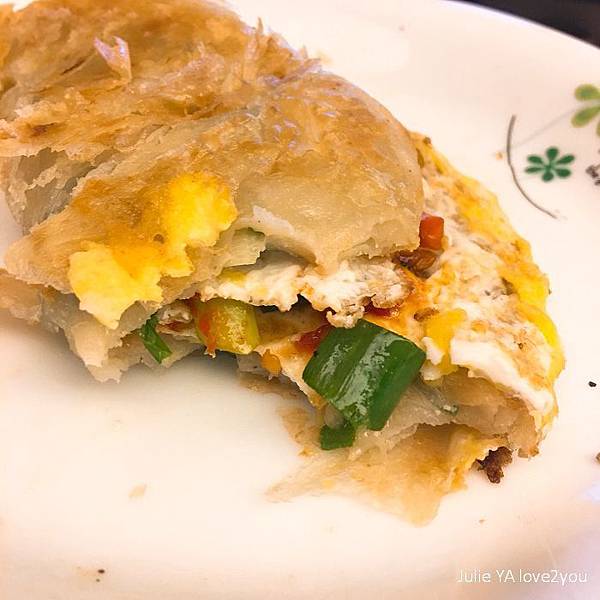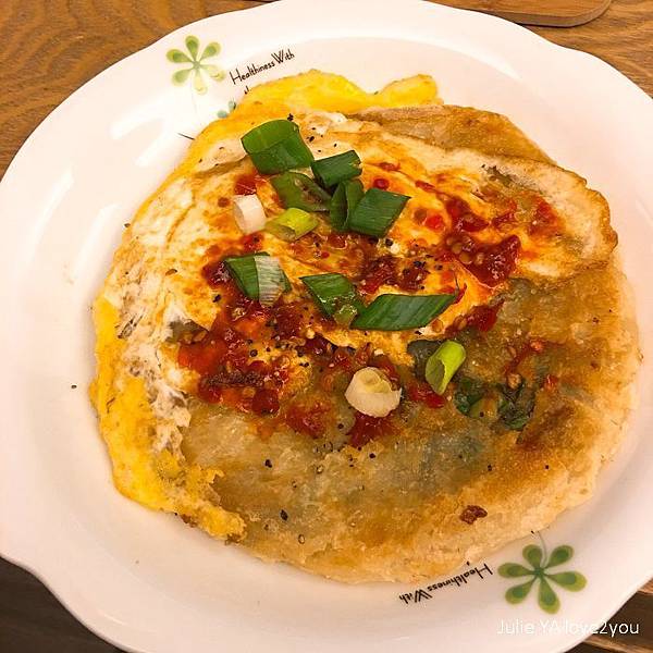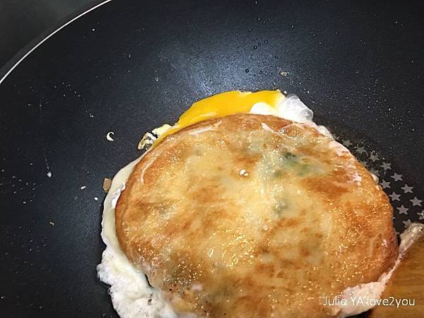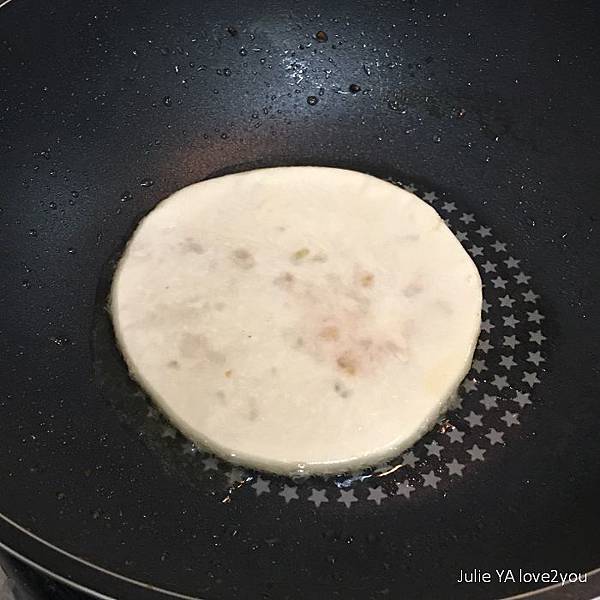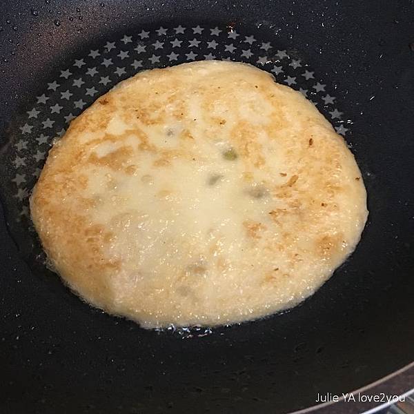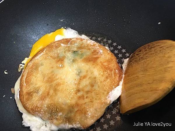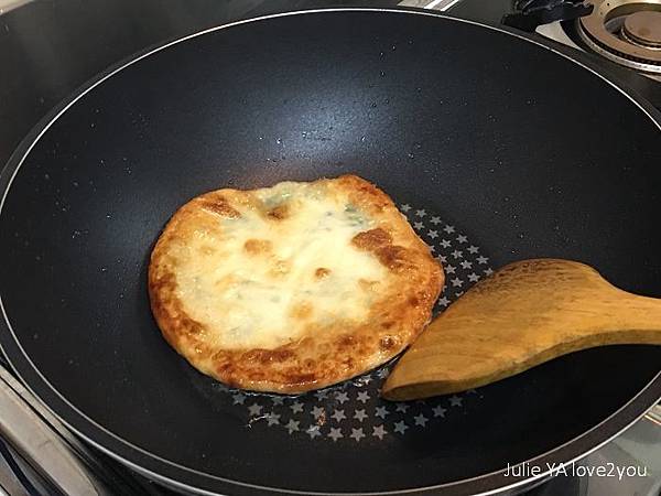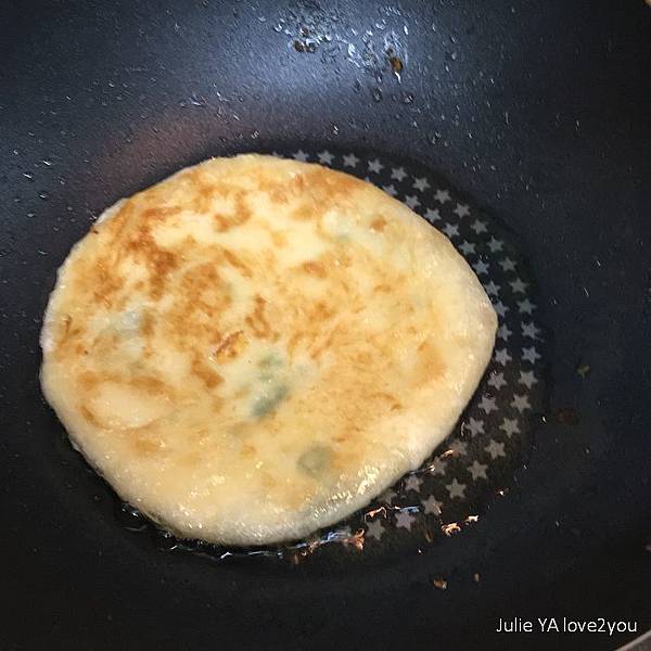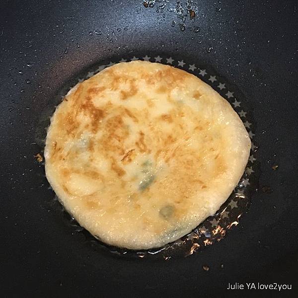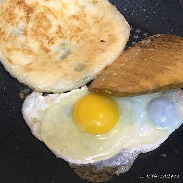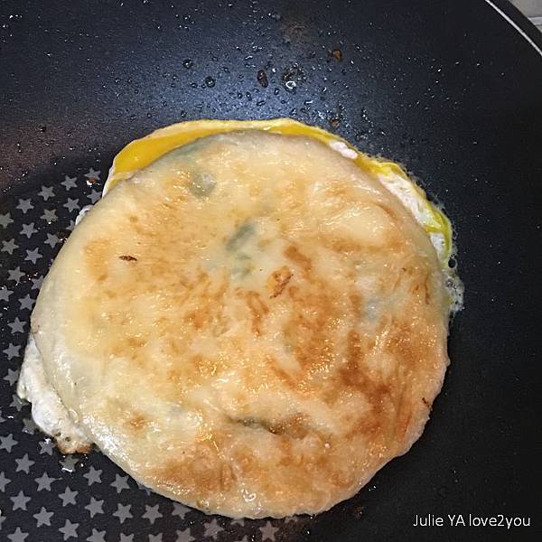 我也像坊間蔥油餅的作法 加了一顆蛋下去