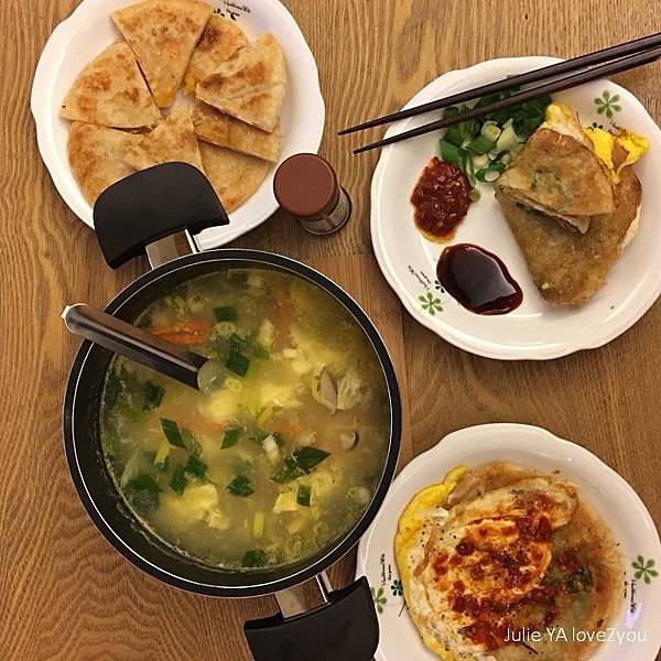 那麼今天跟大家分享我和皓哥的晚餐:千層蔥餡拉餅、千層地瓜拉餅