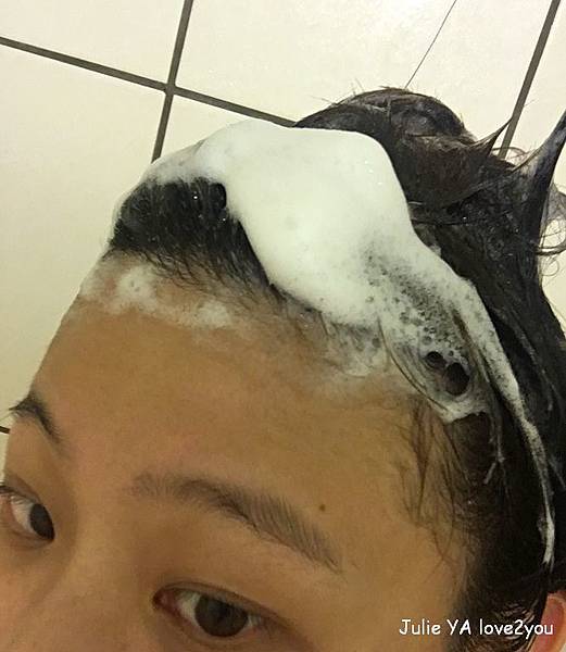 在與頭皮、頭髮清潔搓揉後,我會讓泡沫停留在頭皮上一會兒