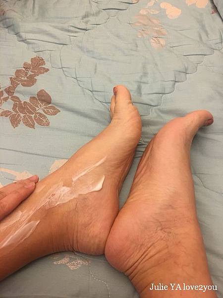 左腳,抹上乳液後真的變得好水潤有光澤感