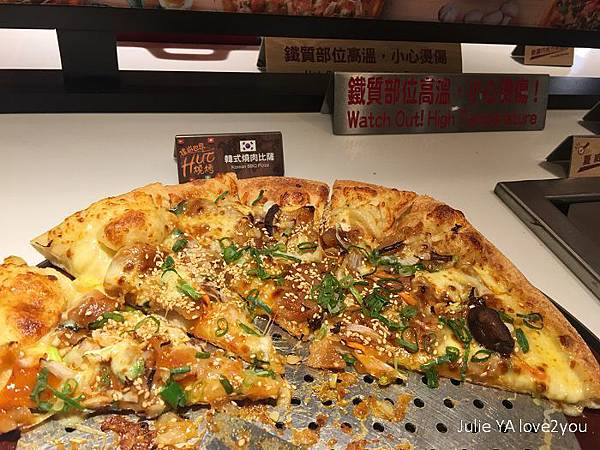 韓式燒肉比薩內含韓式烤肉漓上蔥花、熟白芝麻還有高麗菜絲等