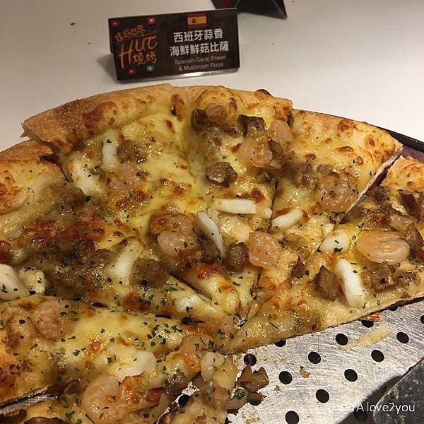 朋友則推薦這一道 西班牙蒜香海鮮鮮菇比薩
