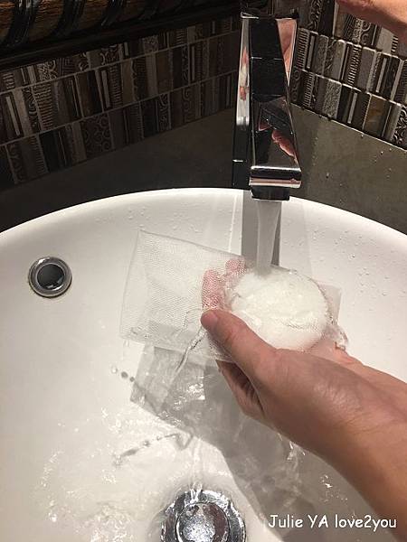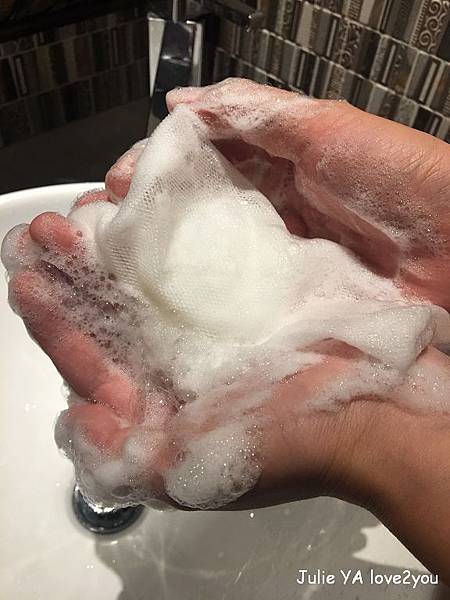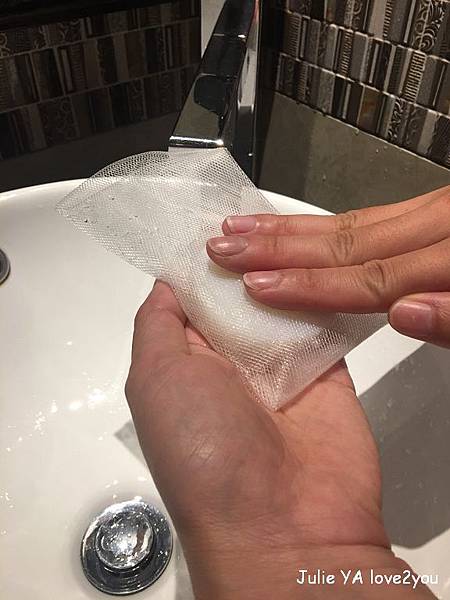 我先把潔顏皂放入專屬的起泡網 就像一個袋子般