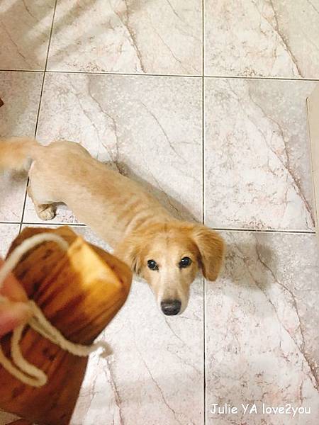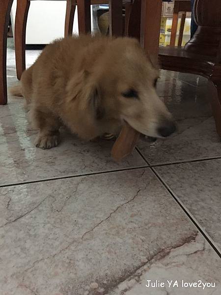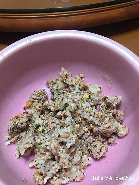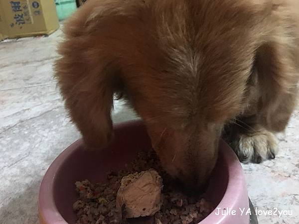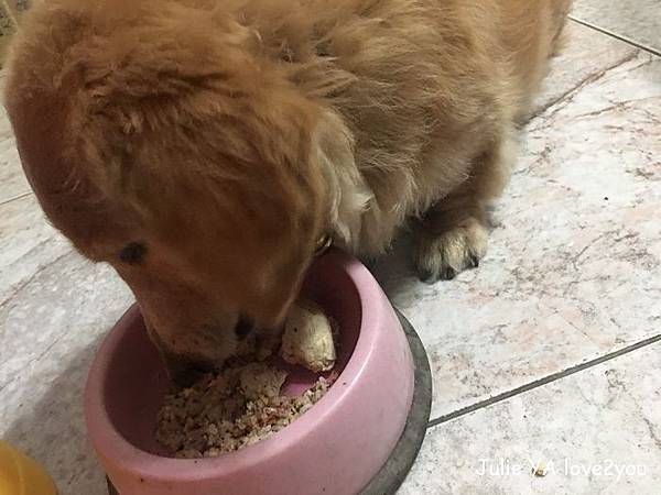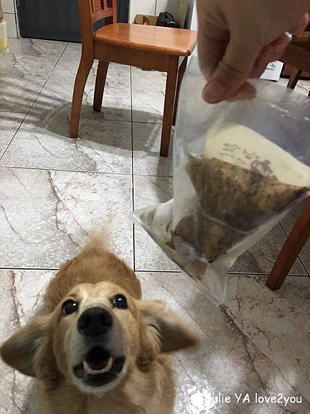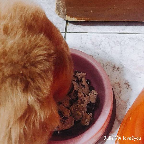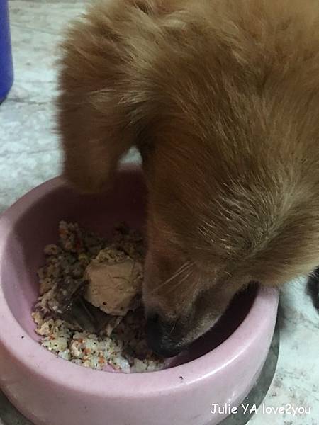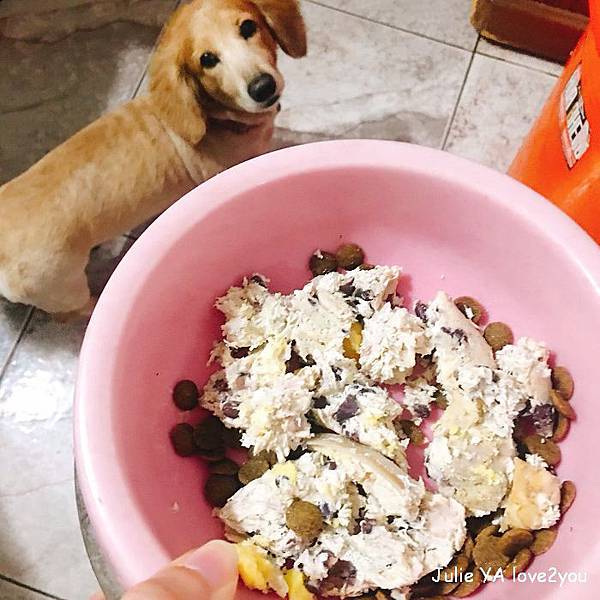 威威今天運動量很足,所以怕他吃不飽我還混飼料,牠一下子就吃光光