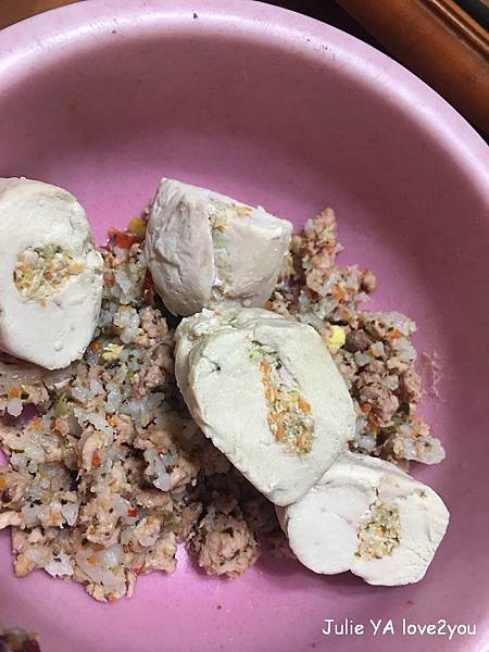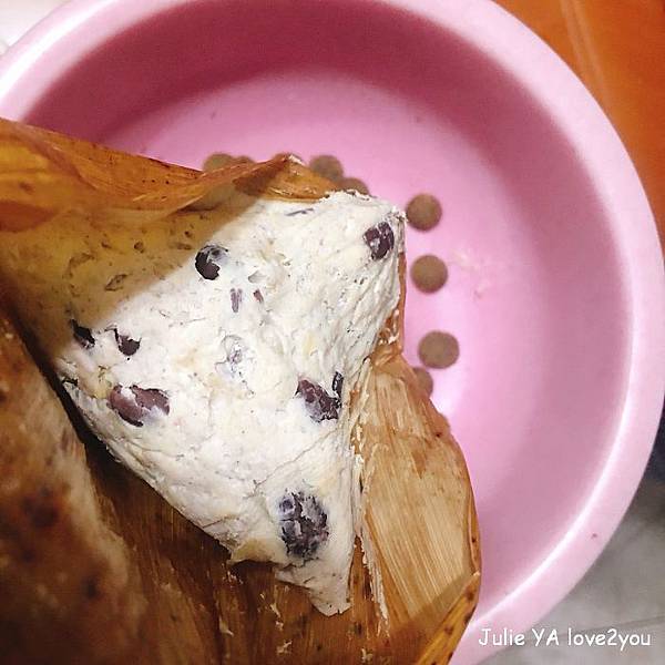 我在娘家用電鍋稍微蒸過,威威就可以提早過端午節 吃顆好吃的肉粽