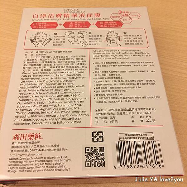 此次體驗的是 森田藥妝 DR.JOU白淨活膚精華液面膜