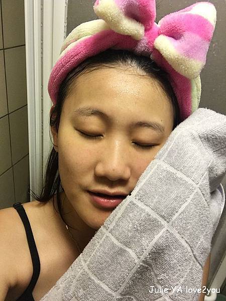 洗後使用乾毛巾輕輕壓拭臉上的水分
