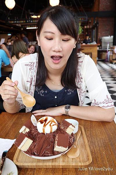 這一盤雪花冰所用到的提拉米蘇蛋糕、還有奶酪都是現場製作生產