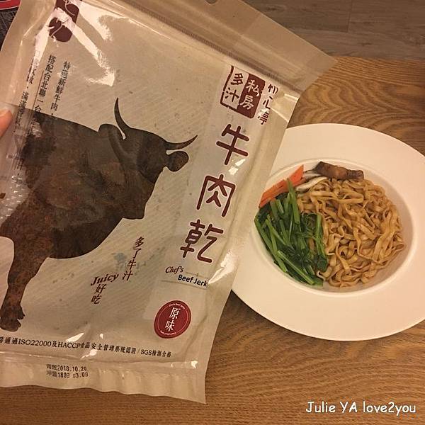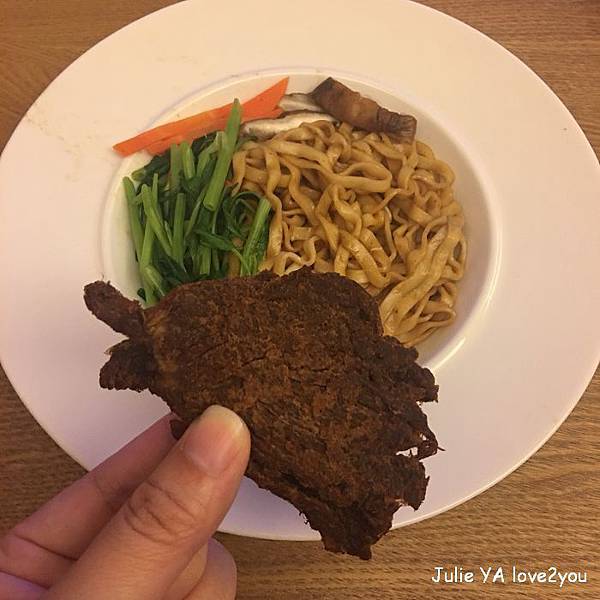 除了乾拌麵還有牛肉乾 兩者搭一起就變牛肉麵了(笑)