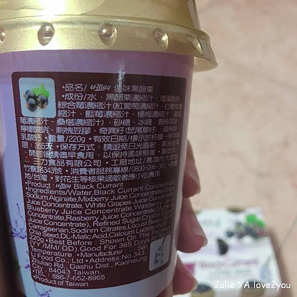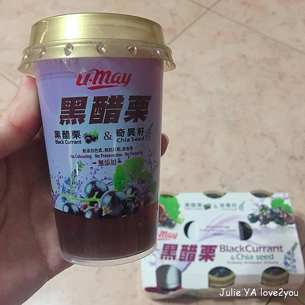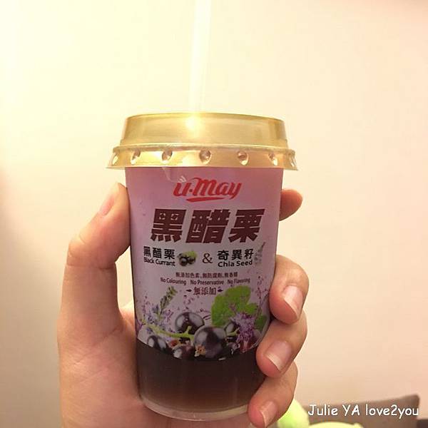 這款黑醋栗還結合了奇亞籽 在喝的時候就會增加口感 感覺還不錯