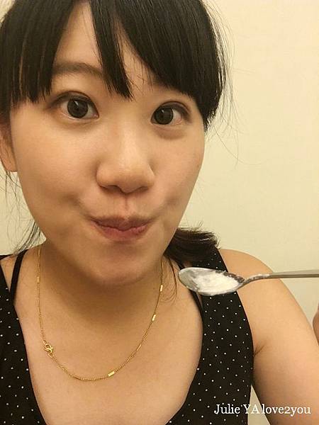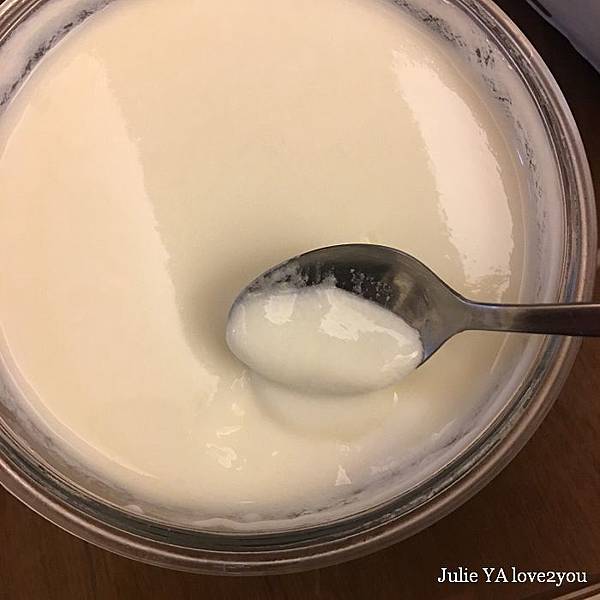 質地和一般優格比較起來 偏水一點 但已經變成是固態的優格了 真的很神奇