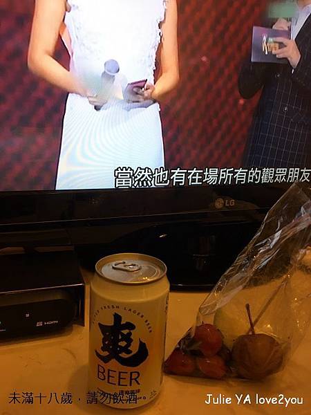 即使回到了飯店 皓哥也不忘買一瓶爽啤 搭配水果、宵夜 看電視…