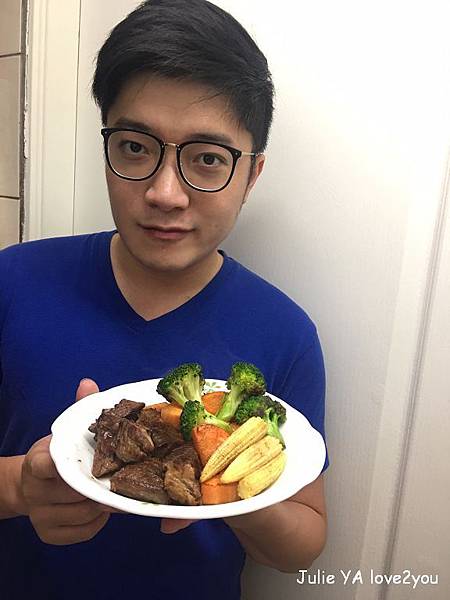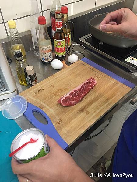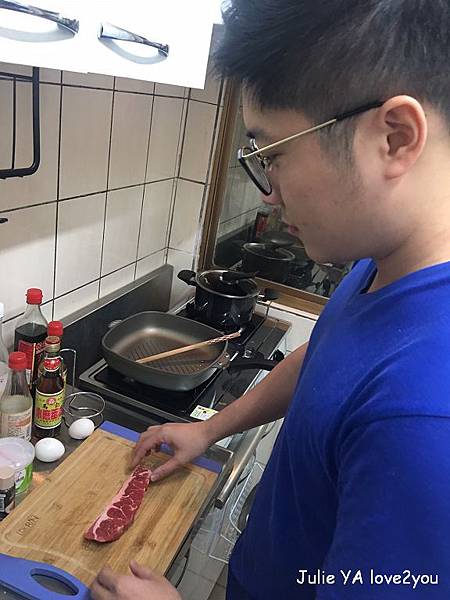 親自下廚剪牛排給我和荳荳吃…孕婦需要多吃牛肉補一下