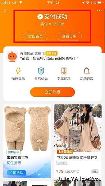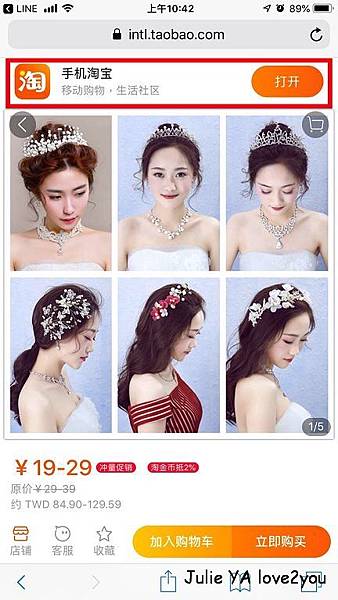 若有下載手機淘寶,便會出現紅框標示處「打開手機淘寶」