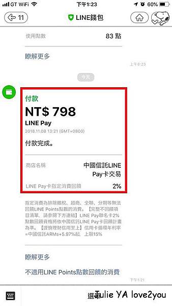 不知道是不是加上我有刷LINE PAY 又擁有2%回饋