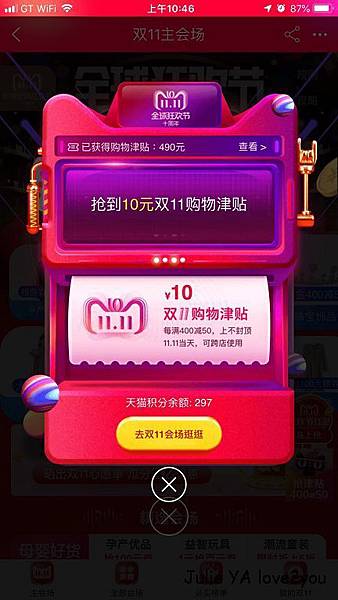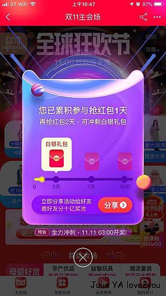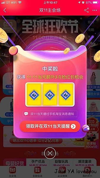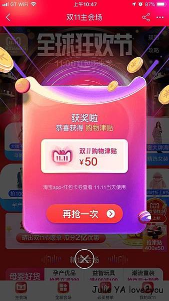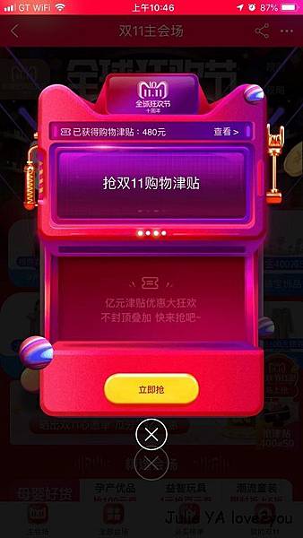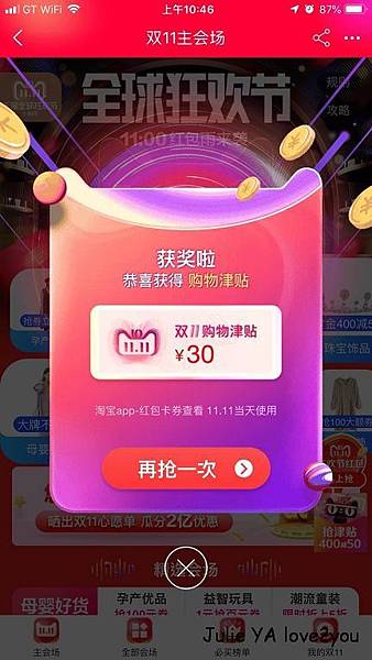 然後到雙11主會場活動頁,便會出現這樣一個活動框
