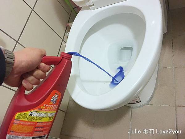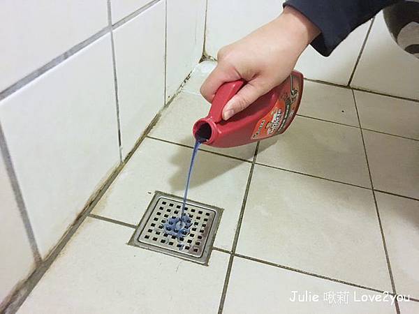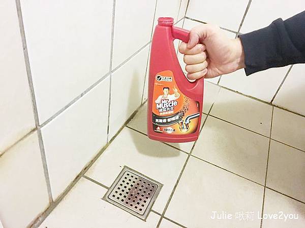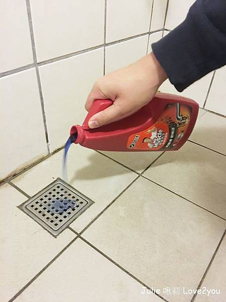 很簡單的將威猛先生倒入至馬桶以及淋浴間的排水孔