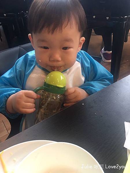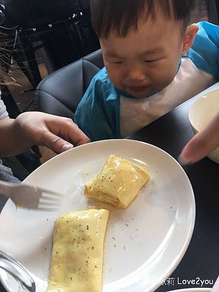 不知道為什麼 胖胖一看到他媽媽把起司蛋切開就哭哭了 可能自己想整塊吃下去