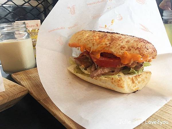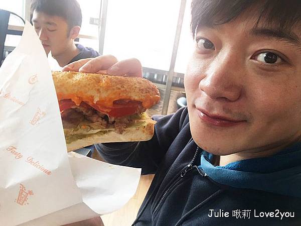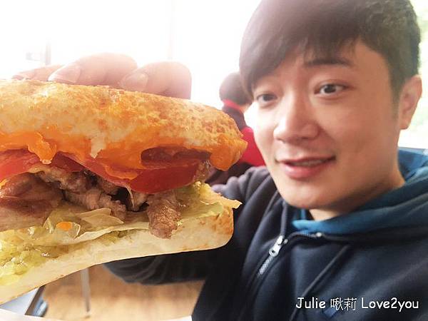 厚實的肉汁噴出來,搭配鬆軟的麵包與生菜,滿口幸福感