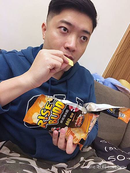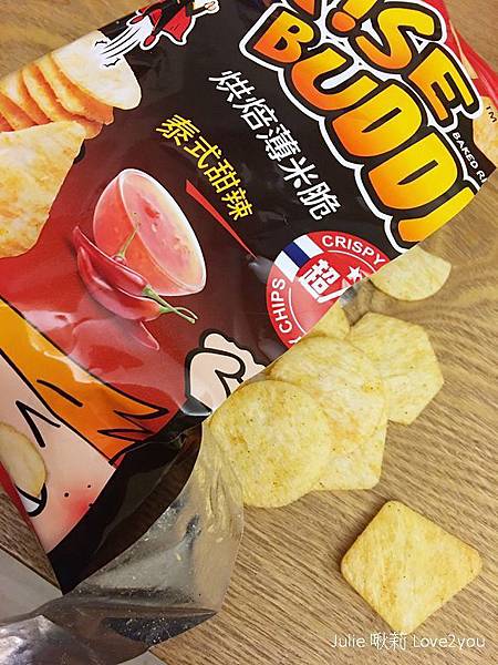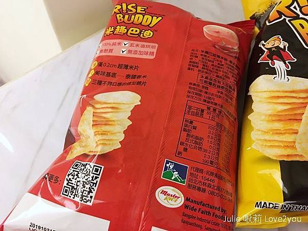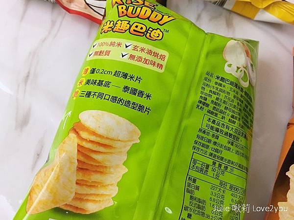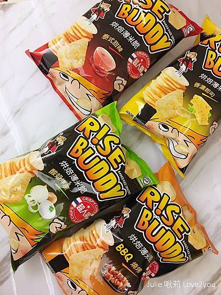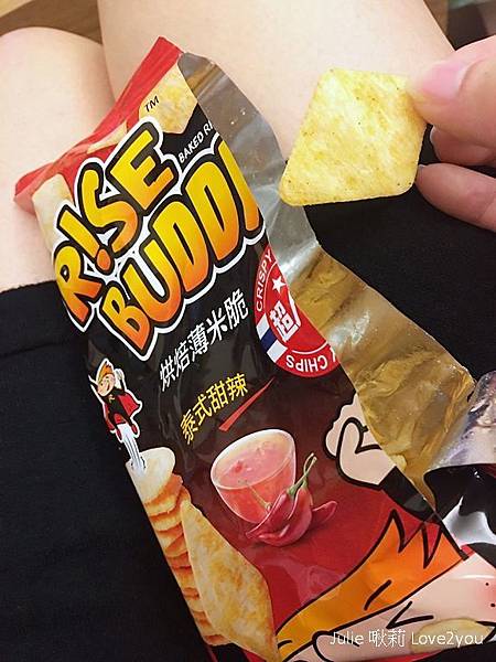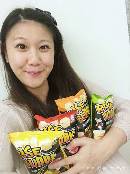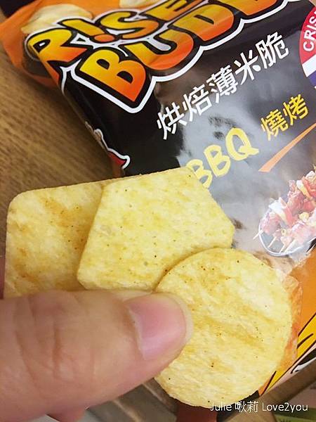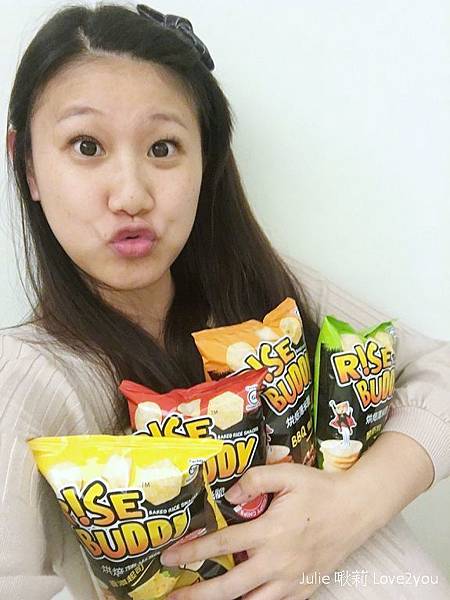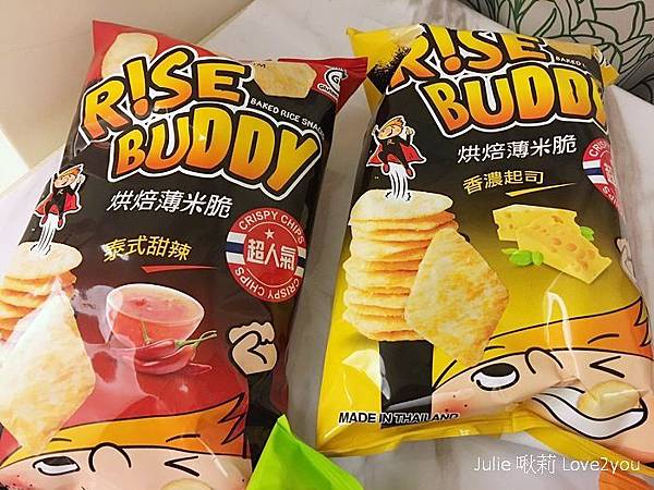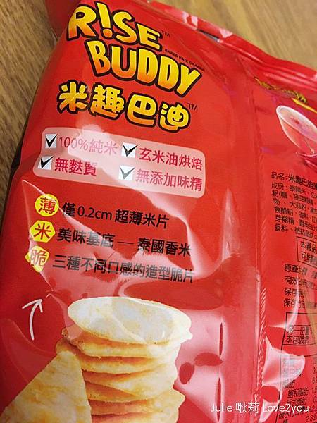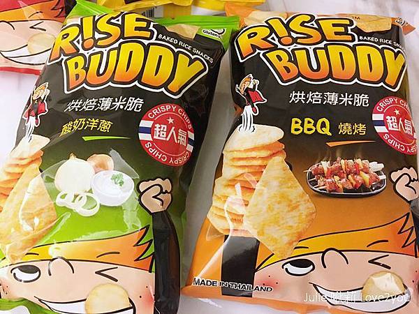 最近新增的零食是這一款「米趣巴迪」烘焙薄米脆RISE BUDDY