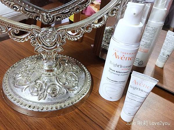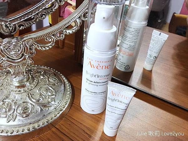 像是雅漾珍珠光美白精華與乳液