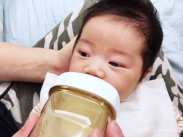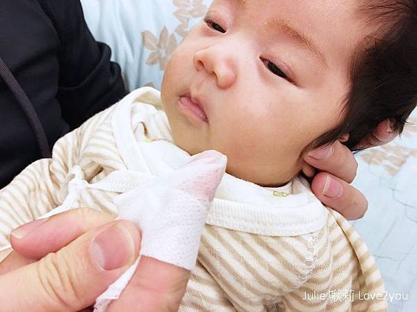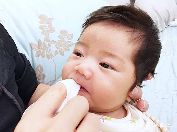 紗布巾沾飲用水 (我建議是溫水唷) 荳荳喝完奶奶就快睡著了