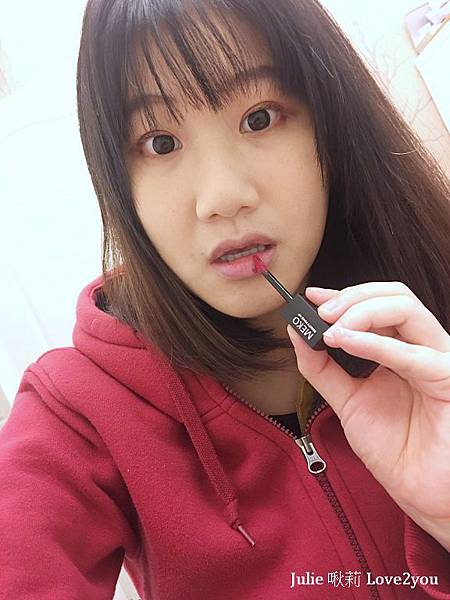 習慣輕點在下唇處 因為顏色很鮮紅 我不敢一次下手太重