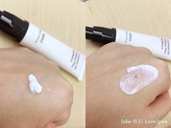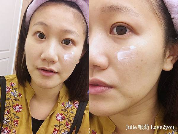 質地是乳白色的 就像乳液般 輕輕抹開 輕盈好推抹 延展性算是高