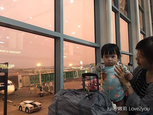 (照片是回程時,荳荳在玩行李箱被我發現)