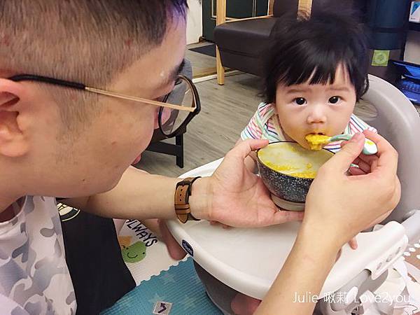 爸爸也搶著餵她吃飯飯