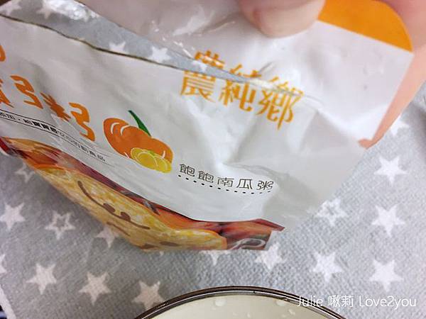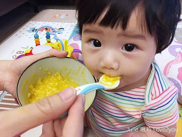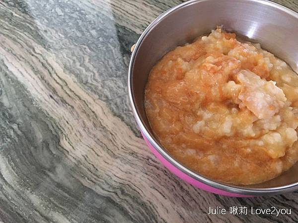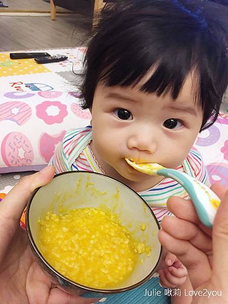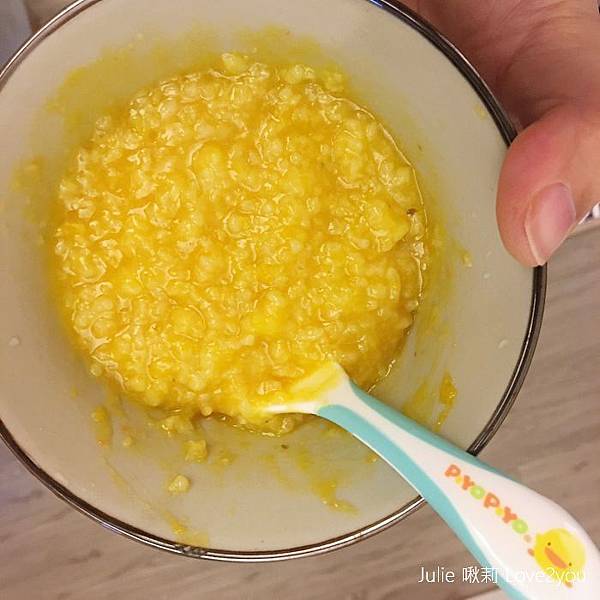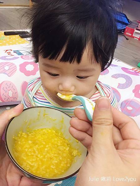 我先讓荳荳吃吃看這款「飽飽南瓜粥」