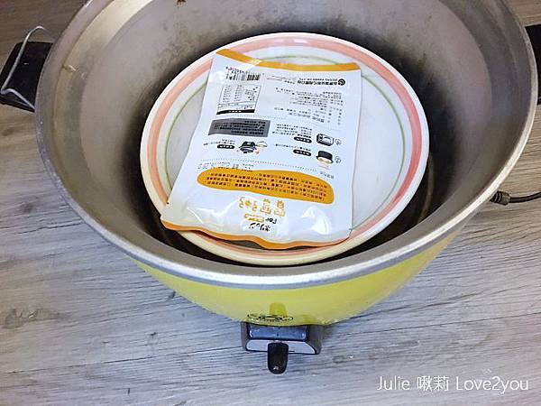 加熱時間不需要太長,所以外鍋水不用倒太多