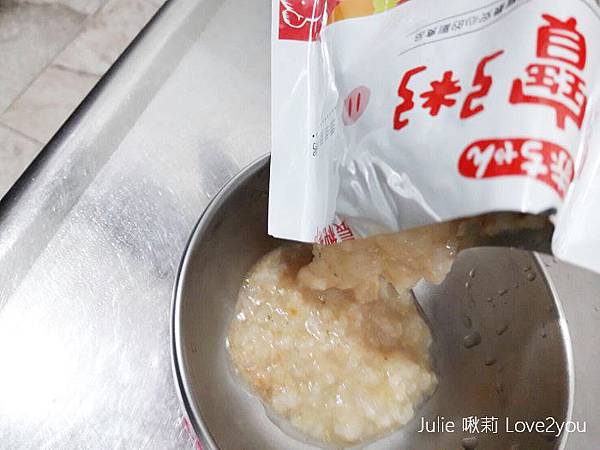 把真空包裝的農純鄉寶寶粥丟入